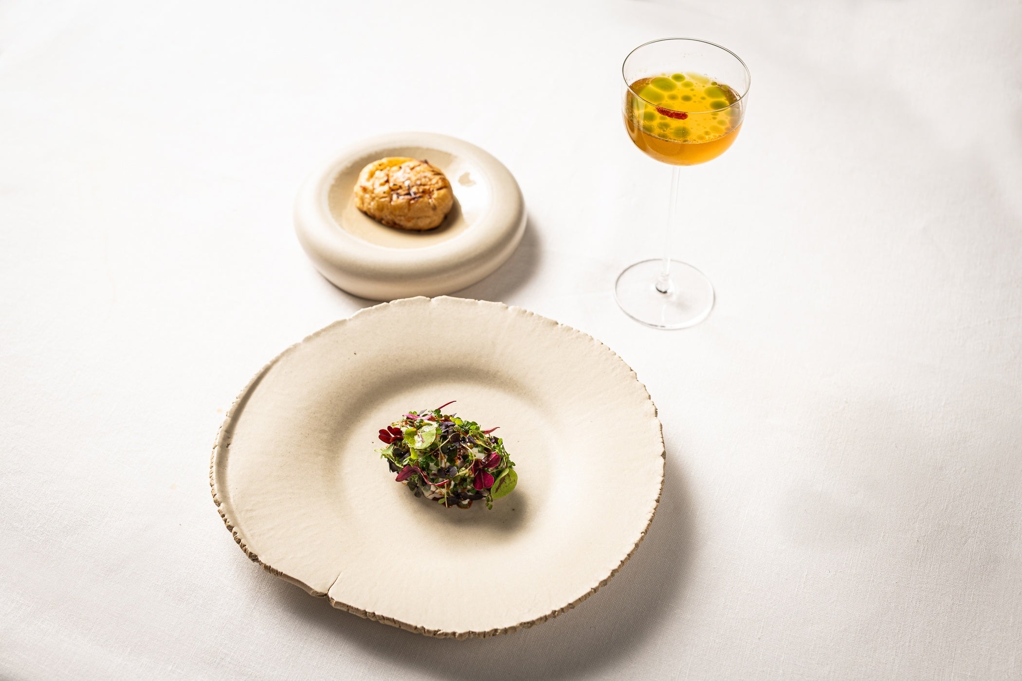 Javier Sanz y Juan Sahuquillo aplican a Cebo su sello, con extra de refinamiento y elegancia, para brindar una experiencia de alta cocina donde destacan el trato desenvuelto y el brillo que cobra el producto más humilde, sea cerdo, tomate o calamar de anzuelo.