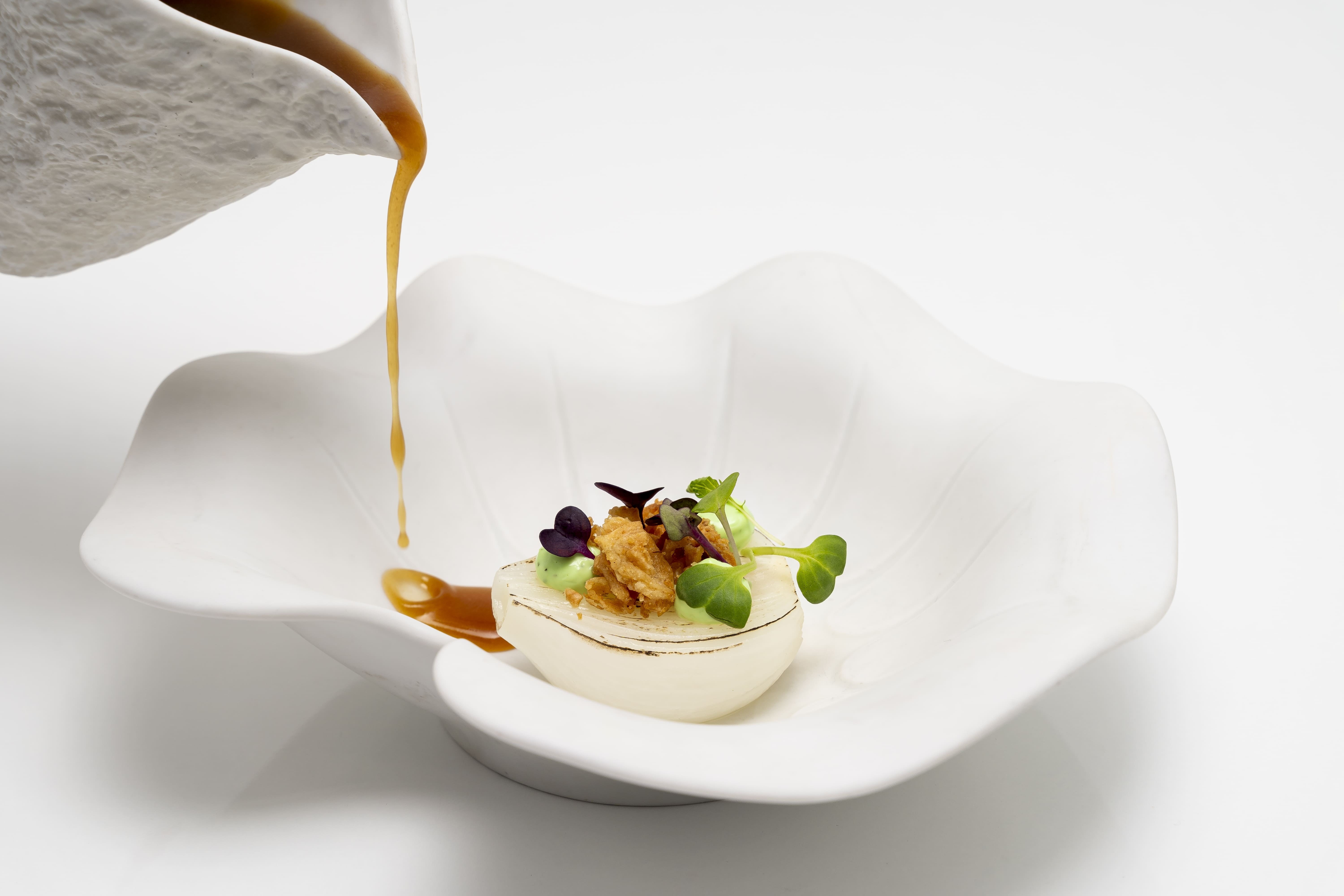 Menú de cocina de vanguardia con verduras de la huerta navarra